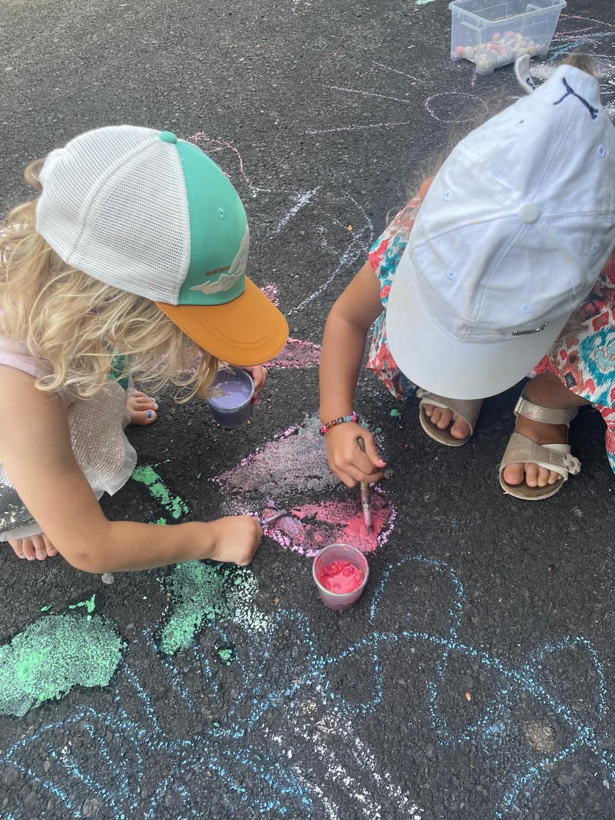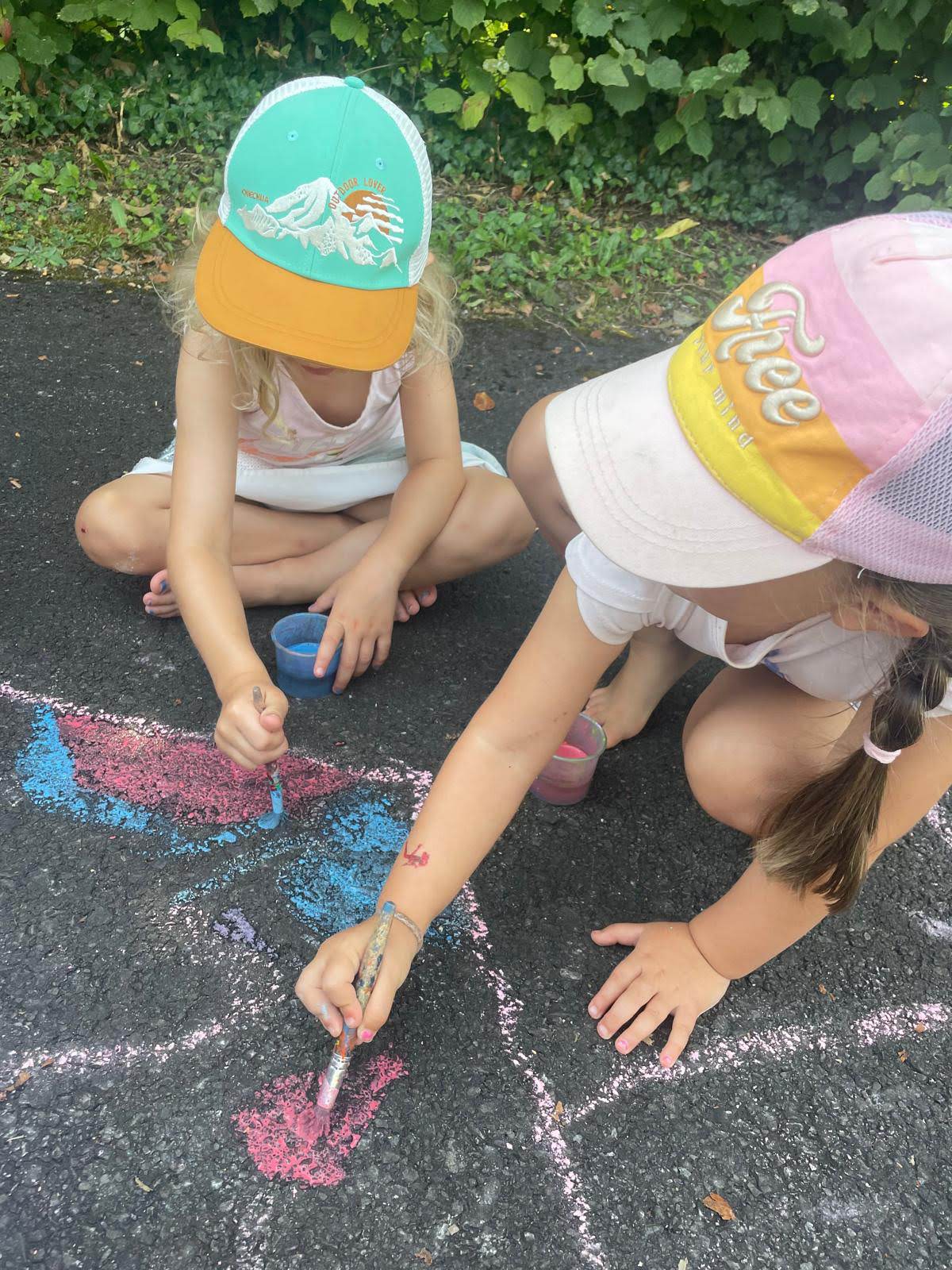 Als die Sonne dann doch noch kam, haben wir uns eigene Kreide zubereitet und an der Sonne gleich ausprobiert.