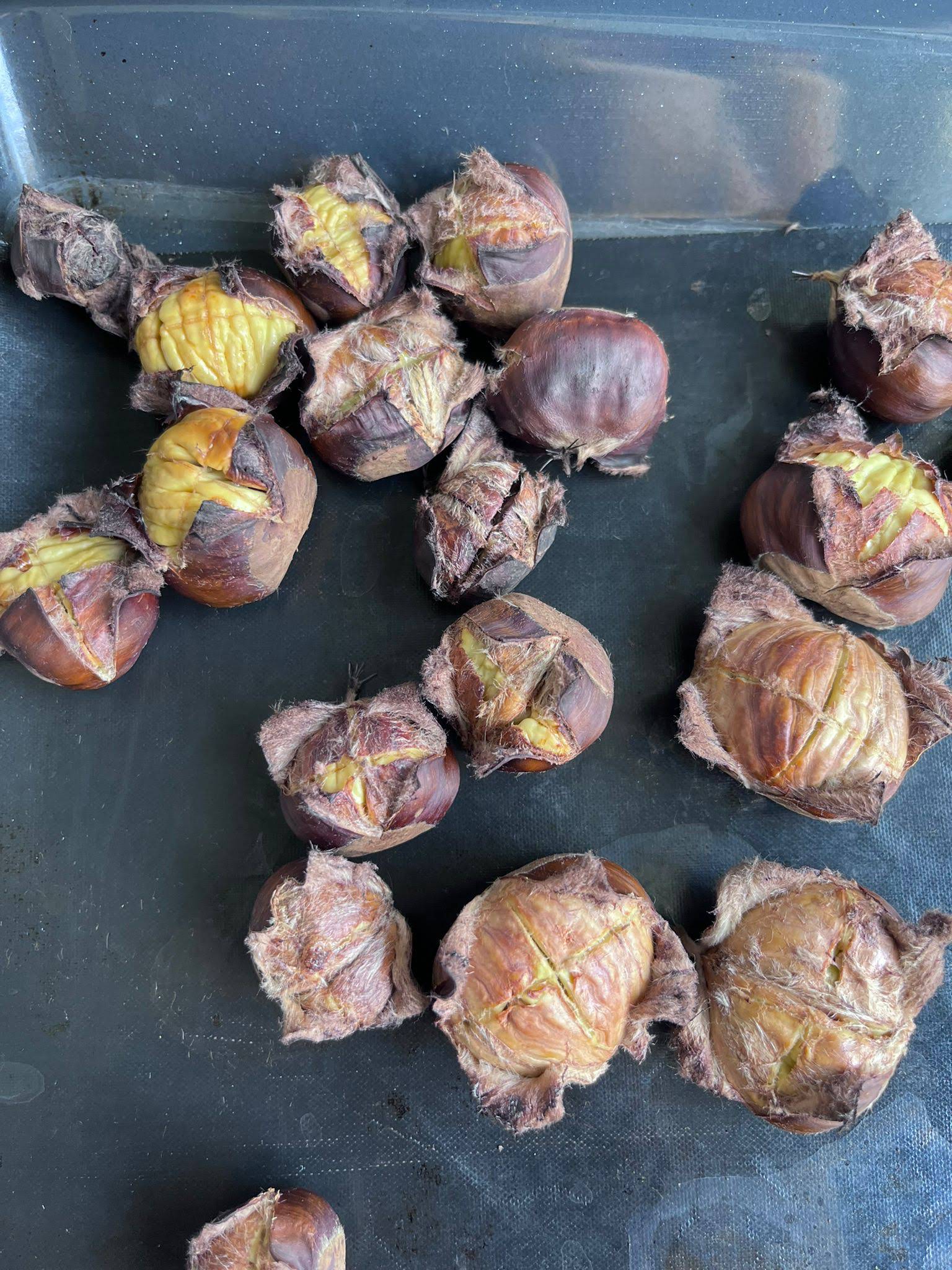 Frisch aus dem Ofen haben wir gleich unsere Bäuche und Hände mit den Marronis aufgewärmt.