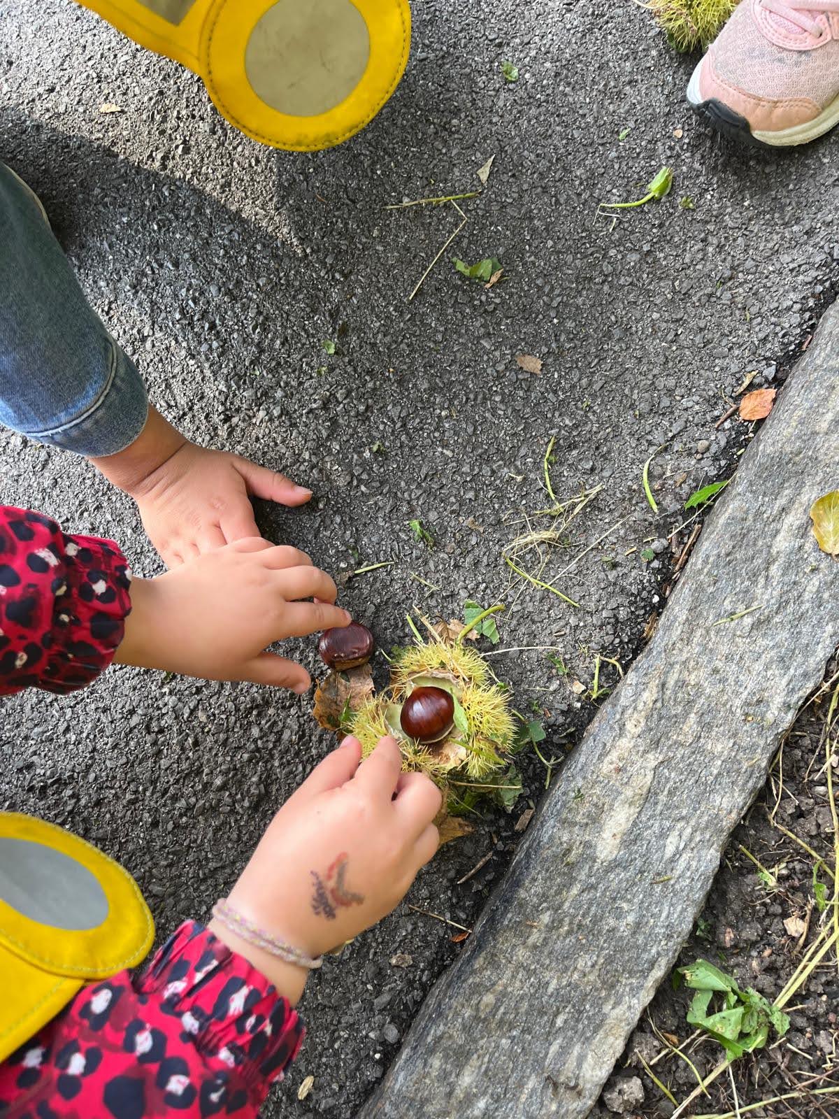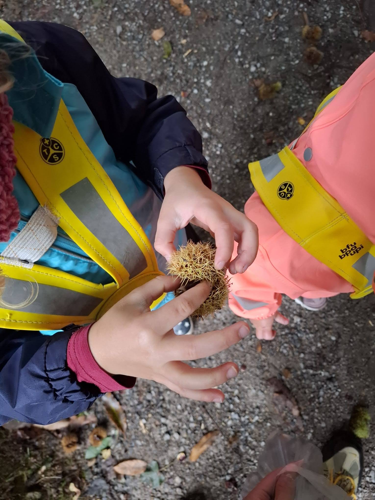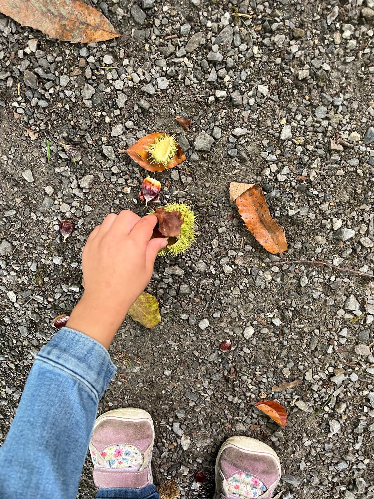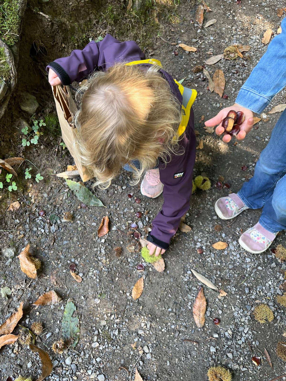 Im Wald haben wir leckere Marroni gefunden und gleich aufgesammelt.